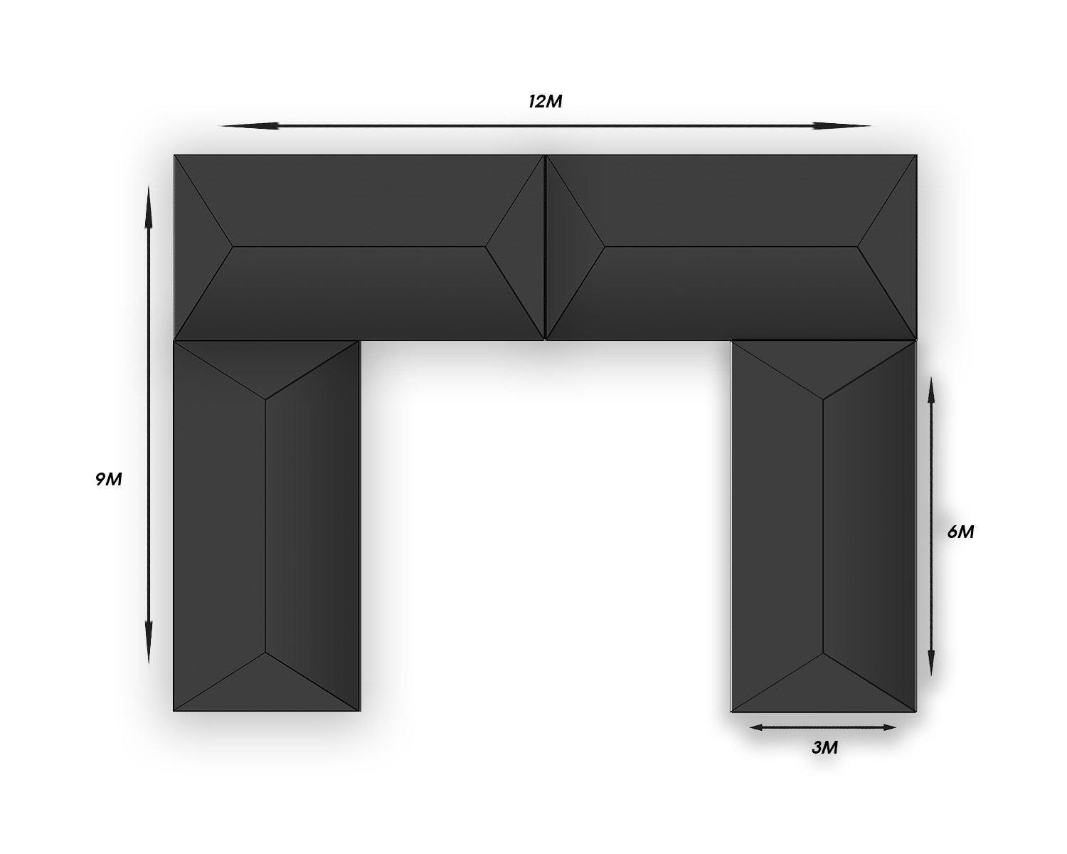 Onze U-vormige 12x9 meter zwarte tentencombi is ontworpen om een gezellige en uitnodigende sfeer te creëren. Met vier 3x6 meter tenten in een U-opstelling, biedt deze tent een charmante ruimte voor evenementen waar interactie en gezelligheid centraal staan. We adviseren om de tent op te zetten zoals op de foto voor de beste lay-out en functionaliteit.