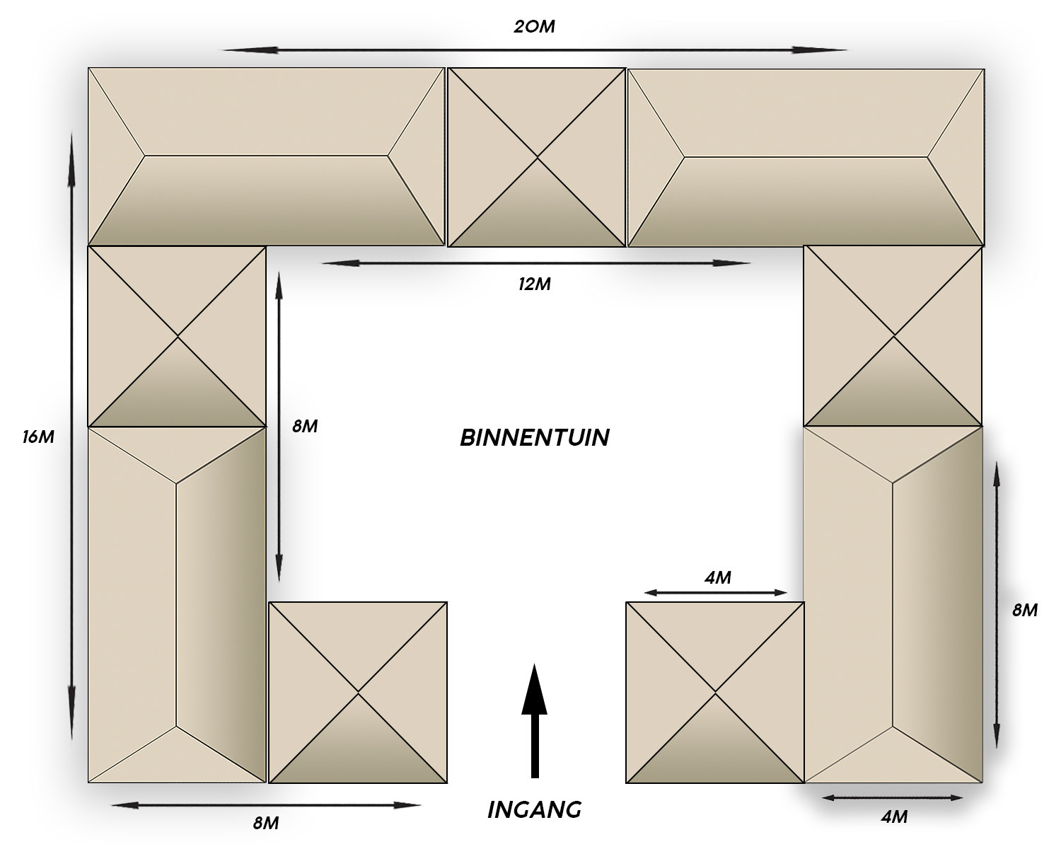 Tentencombi 20x16 C-vorm Zandkleur zonder zijwanden