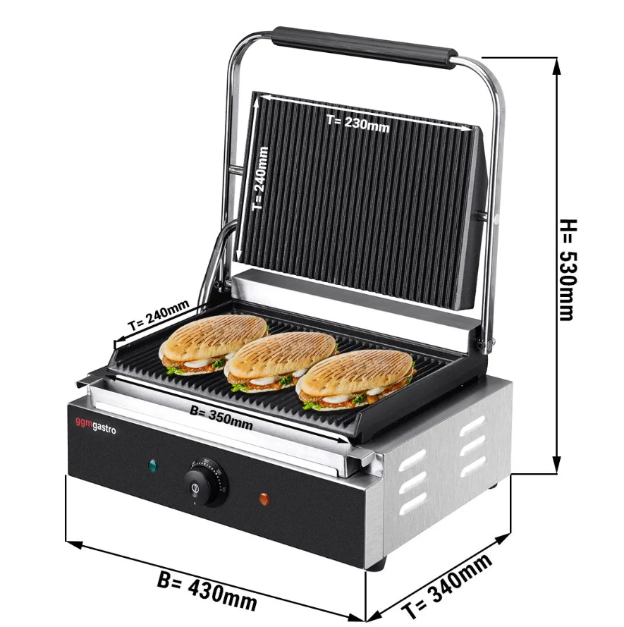 - Grillplaat boven & onder geribbeld. Dit is de ideale mal voor pannini en voor geribbeld gebakke vlees, broodjes, groenten of vis.
