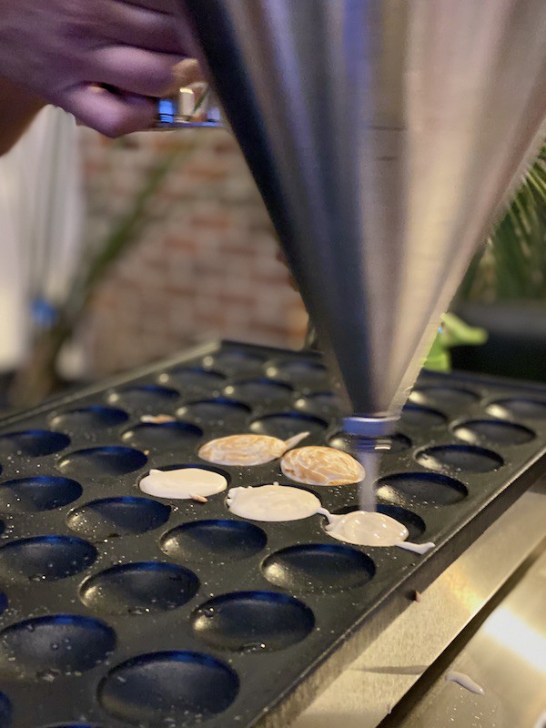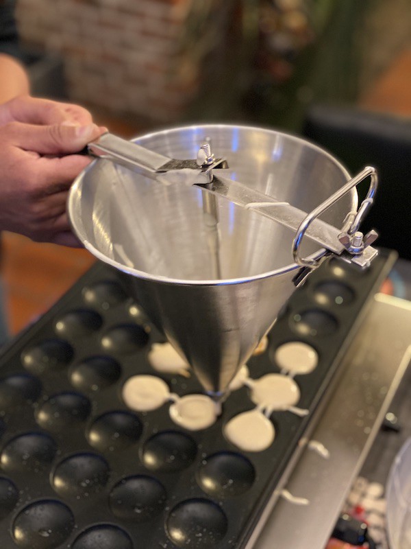 Als je zelf poffertjes maakt dan is het wel heel handig om het deeg op de poffertjesplaat te spuiten met deze dispenser.
