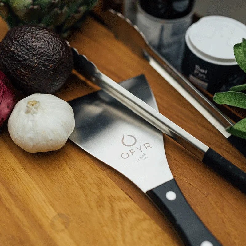 De OFYR Spatula PRO heeft een thermoplastisch handvat voor optimale grip en een blad van roestvrij staal. Met de scherpe rand kan voedsel gemakkelijk worden omgekeerd. Een onmisbaar stuk gereedschap voor koken in de buitenlucht.