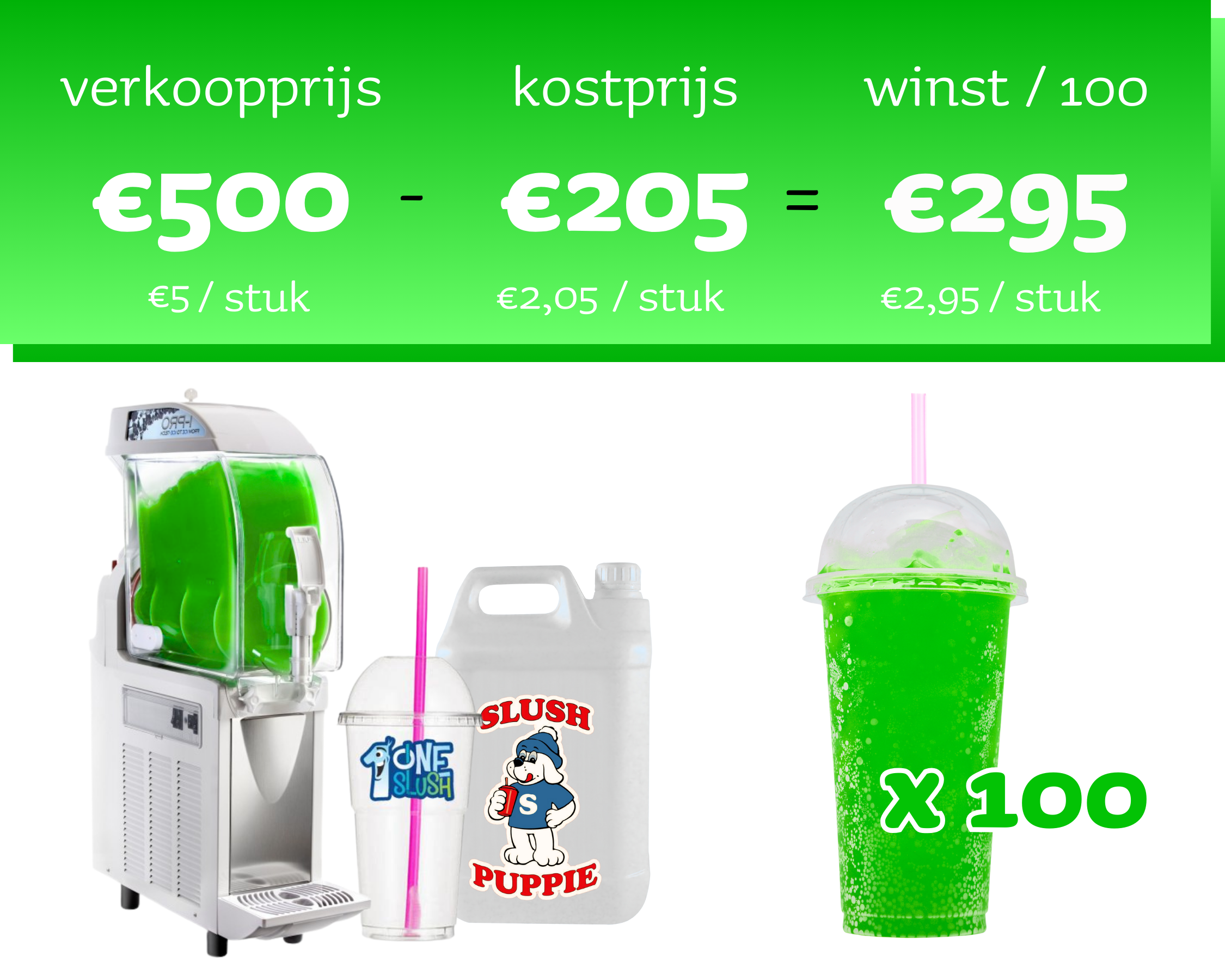 Verkoop de slushy's voor €5 per stuk en maak een winst van maar liefst €295!