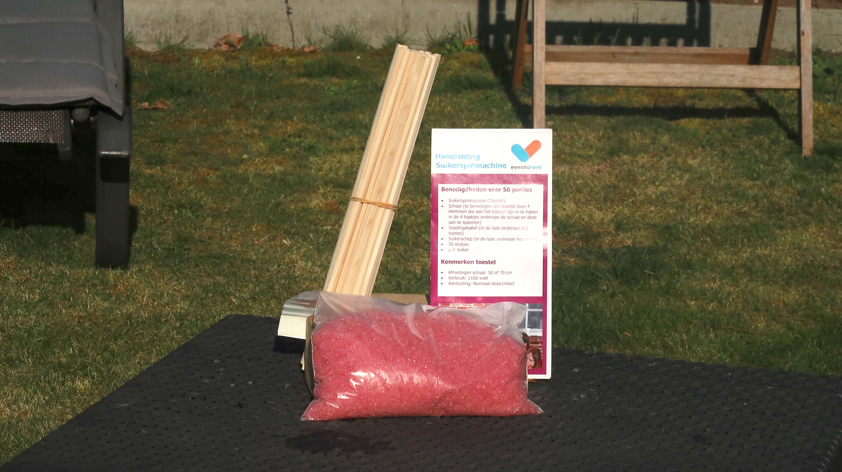 Onze suikerspin porties bestaan uit suikerspinsuiker voor 50 personen en 50 stokjes. Met de bij het toestel geleverde schep kan je voldoende suikerspin toevoegen om een mooie grote suikerspin te maken. Je kan hier ook extra blauwe porties of extra witte porties huren.