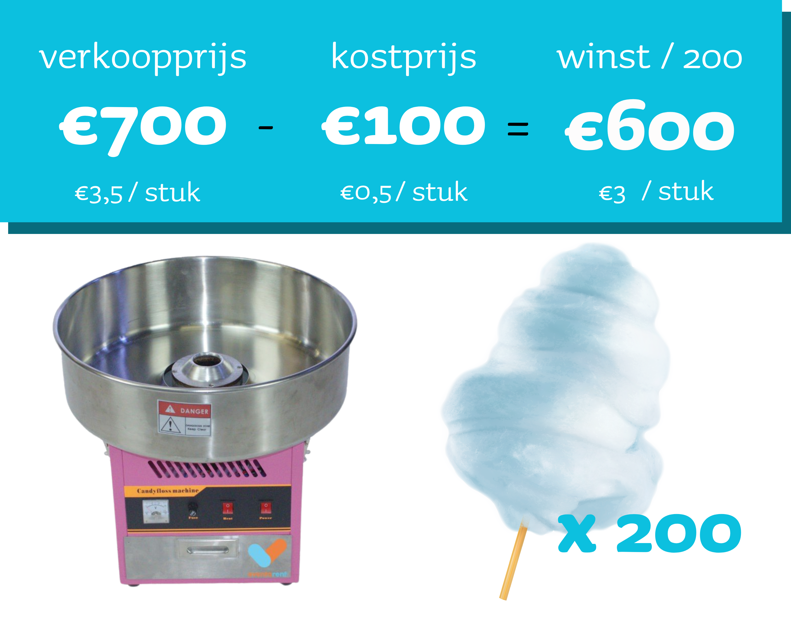 - Terugverdienen van de Investering: 29 suikerspinnen x €3,50 = €101,5