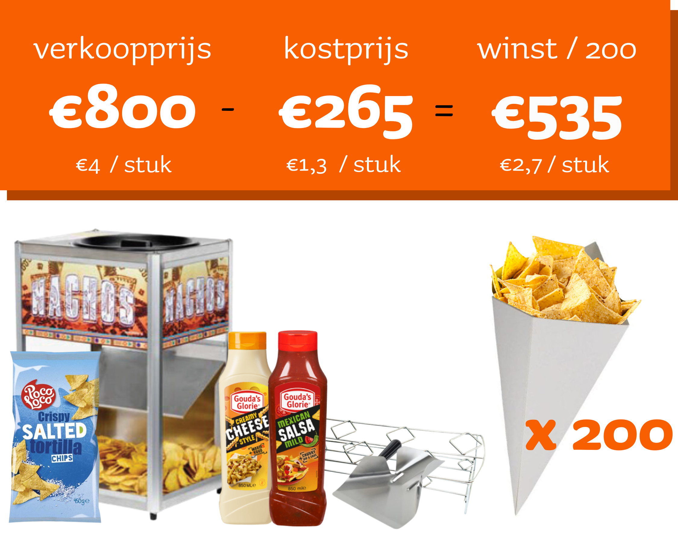 - Nachomachine: Huur onze professionele nachomachine om de nacho's perfect warm te houden en klaar te maken voor het serveren. (Aantal: 1 stuk)