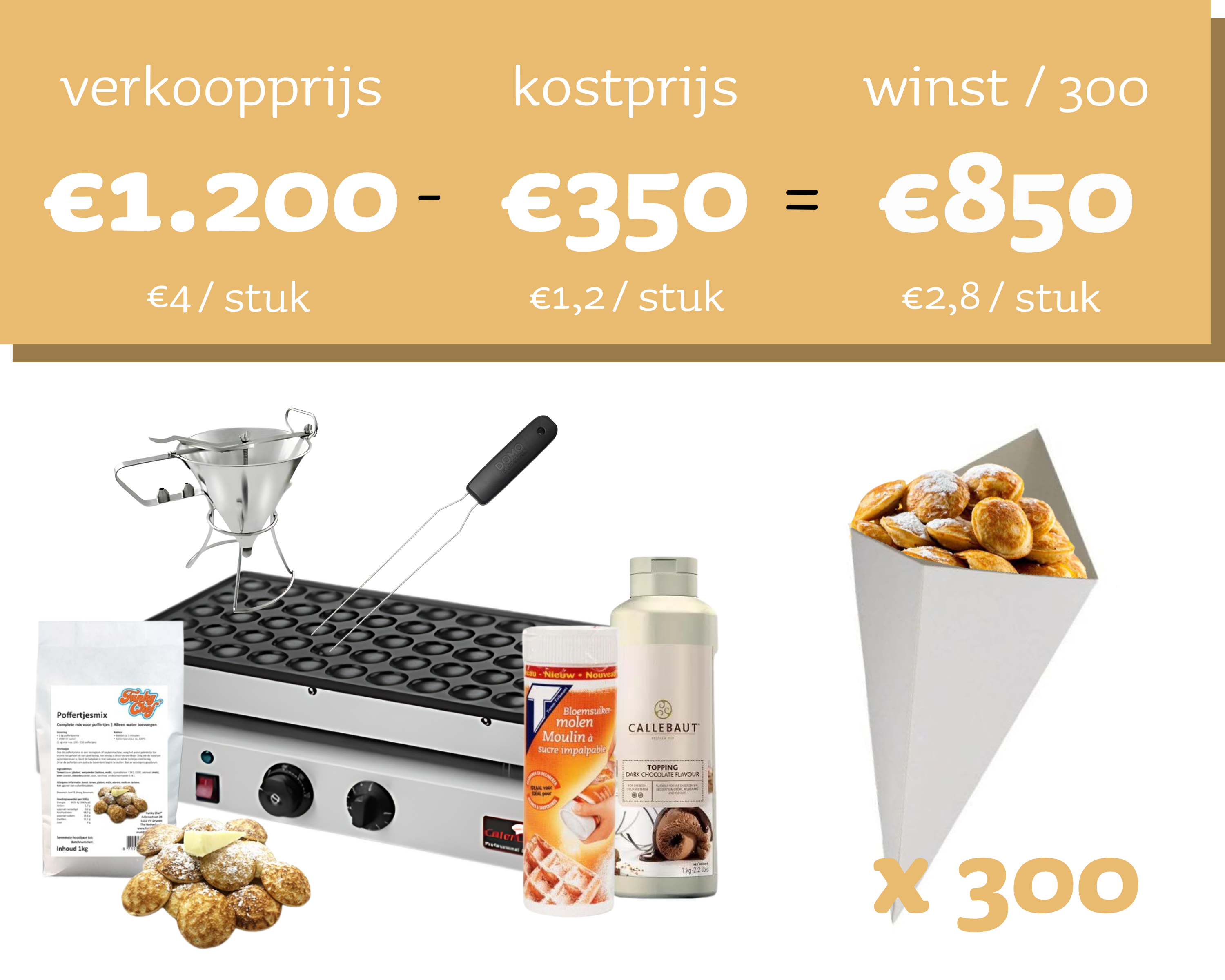 Verkoopset 300 porties Poffertjes (incl. toppings)