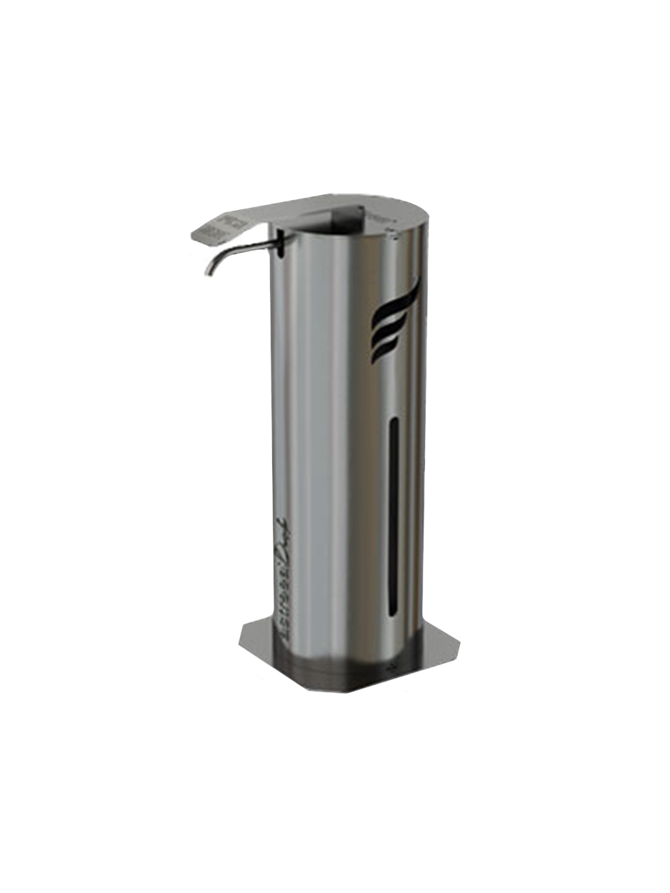 Een stjilvolle dispenser in rvs met 1 l reservoir om op je tafel of toonbank te plaatsen.