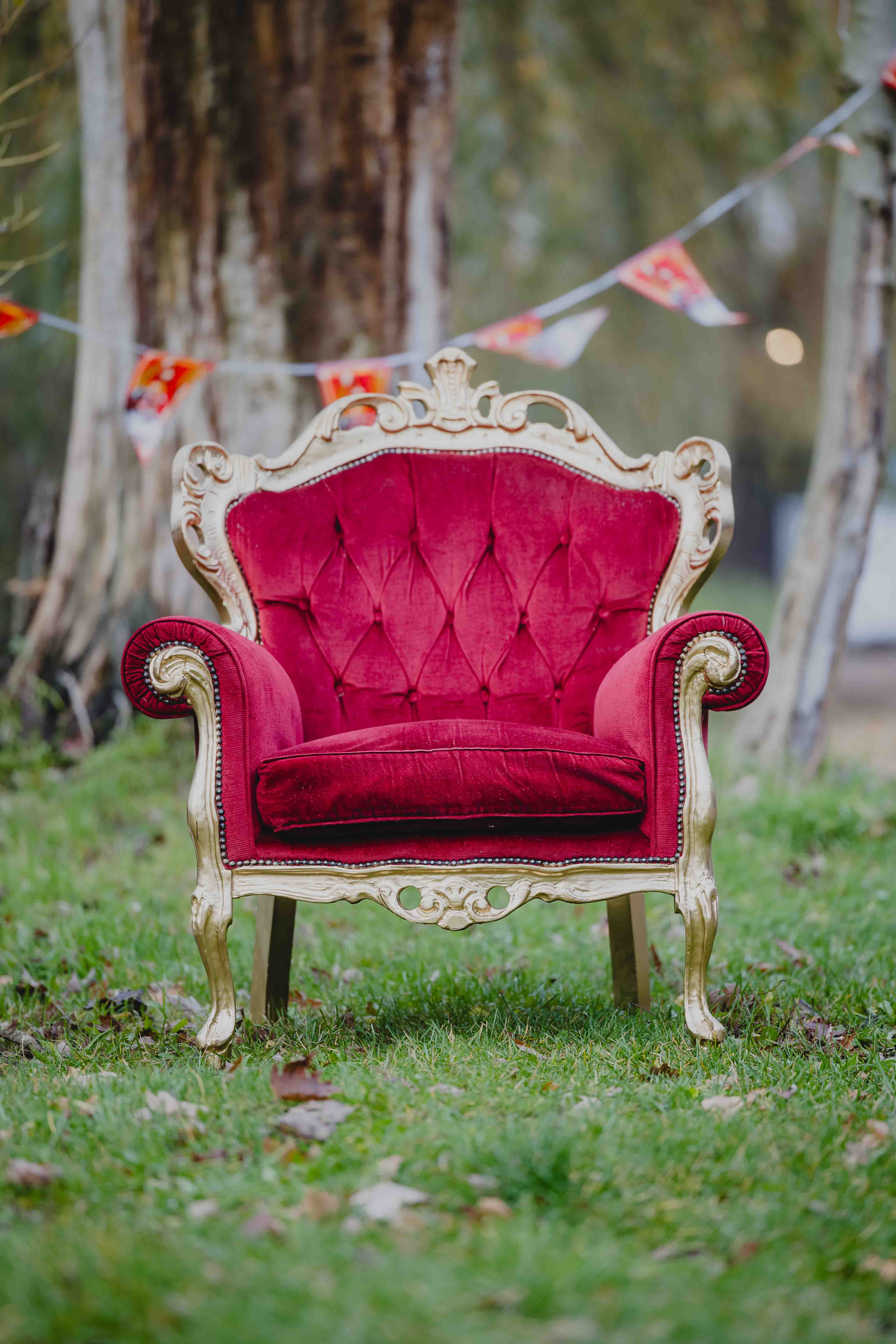 De stoel is mooi rood en is voorzien van een goude rand waardoor deze net dat tikkeltje extra heeft.