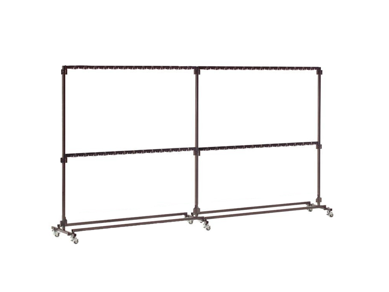 Degelijk kledingrek met 208 haakjes om jassen aan te hangen. Aan elke kant vind je 104 haken.