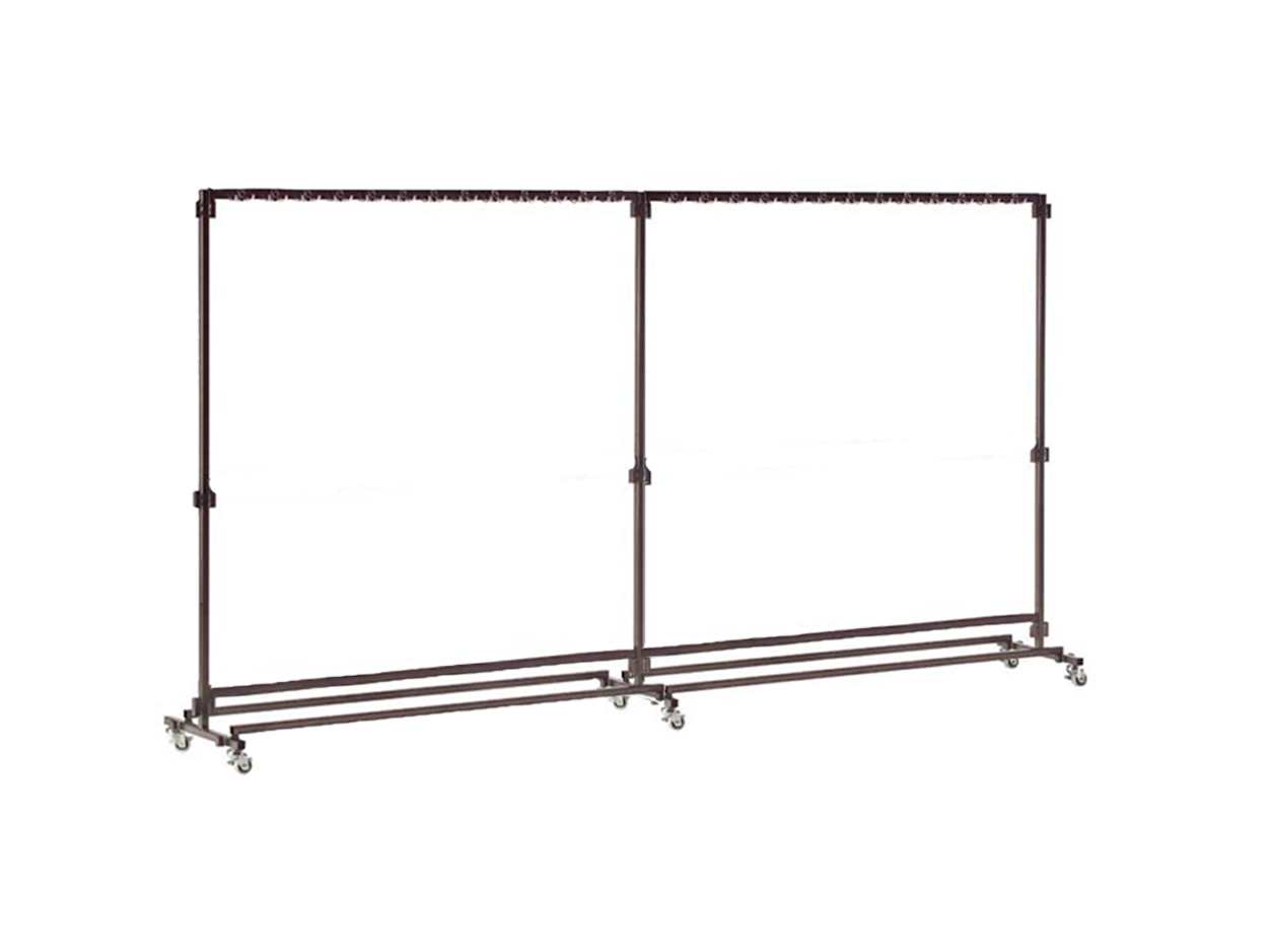 Degelijk kledingrek met 104 haakjes om jassen aan te hangen. Aan elke kant vind je 52 haken.