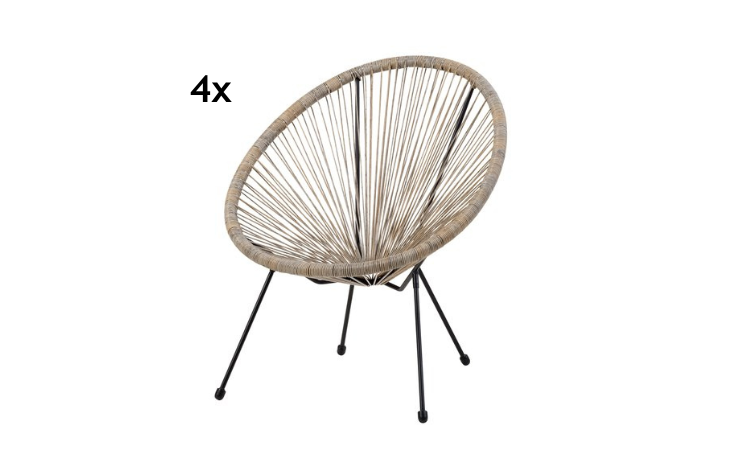| Belangrijke opmerking (2) | Frame: staal, Rugleuning: Polyrotan (polyethyleen) + zitting: polyrotan (polyethyleen) + poten: staal |