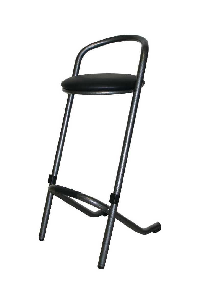 Zwarte stijlvolle barkruk bestaande uit een stevig frame in 'hamerslag' (donkergrijs met zwaarte spikkeltjes) en een kunstlederen zwarte zachte zit.