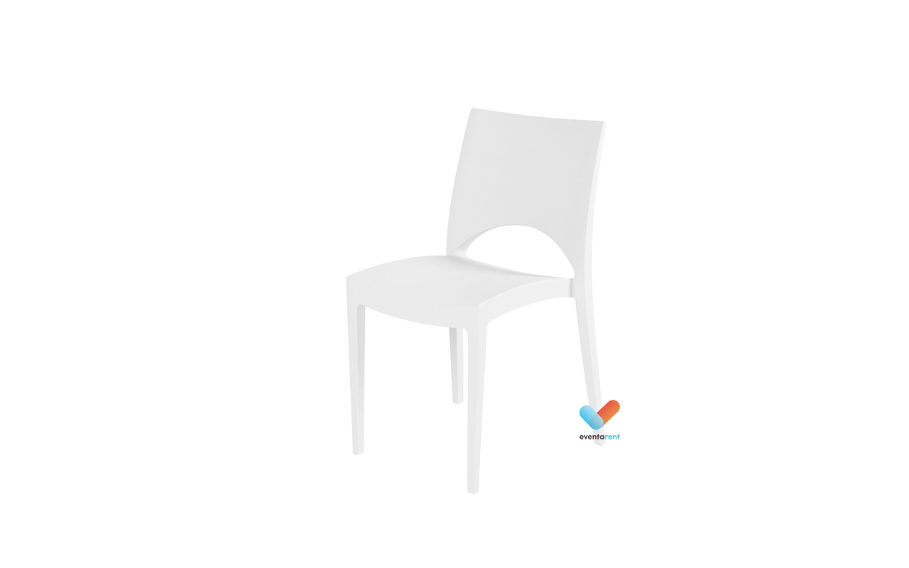 Huur deze prachtige witte stoel. Deze heeft een tijdsloos design en is heel populair voor bedrijfsevents, tuinfeesten of huwelijksfeesten.