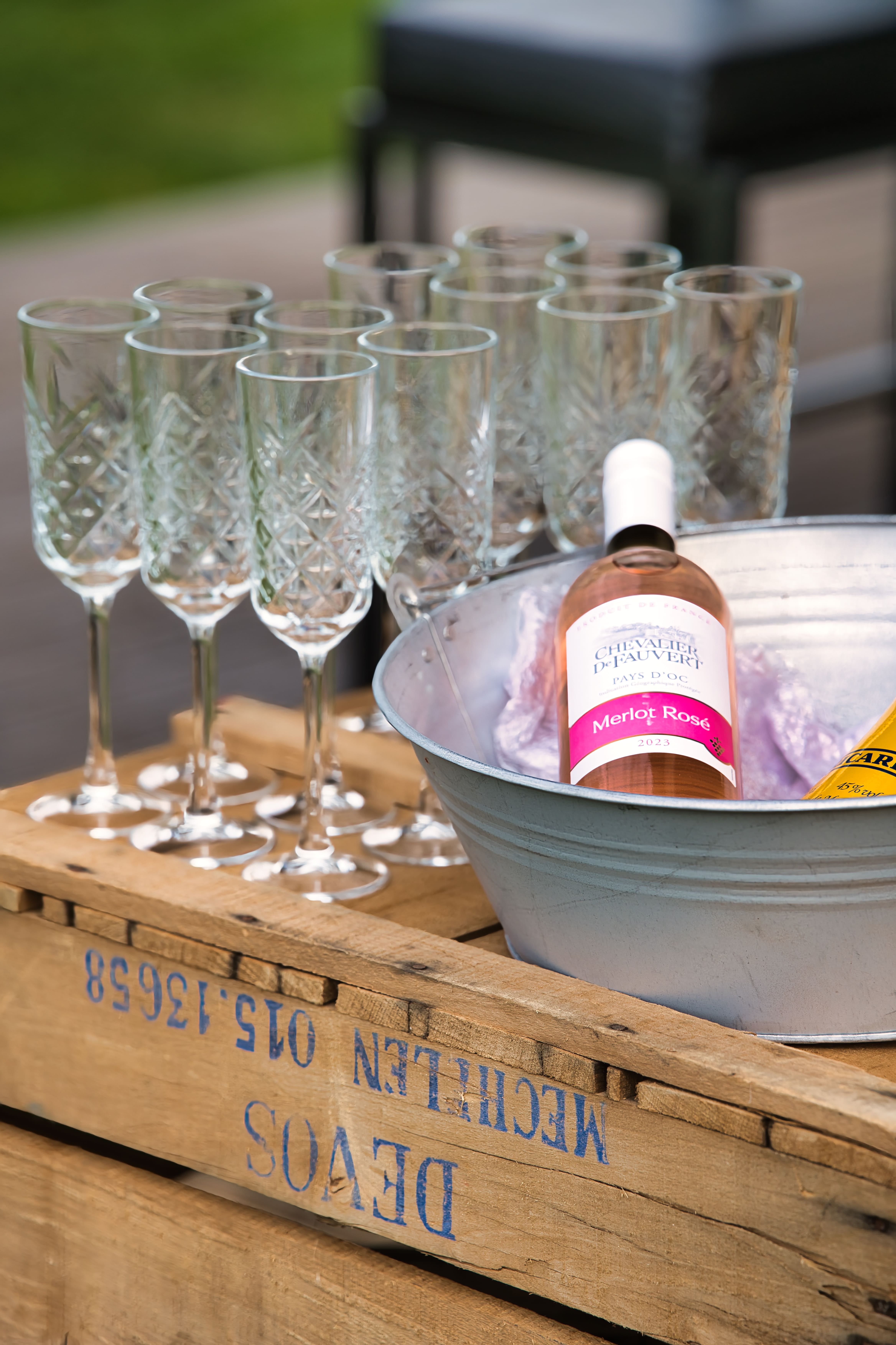 | Belangrijke opmerking (3) | Glazen omdraaien bij retour (zo niet wordt er €5 per bak aangerekend) |