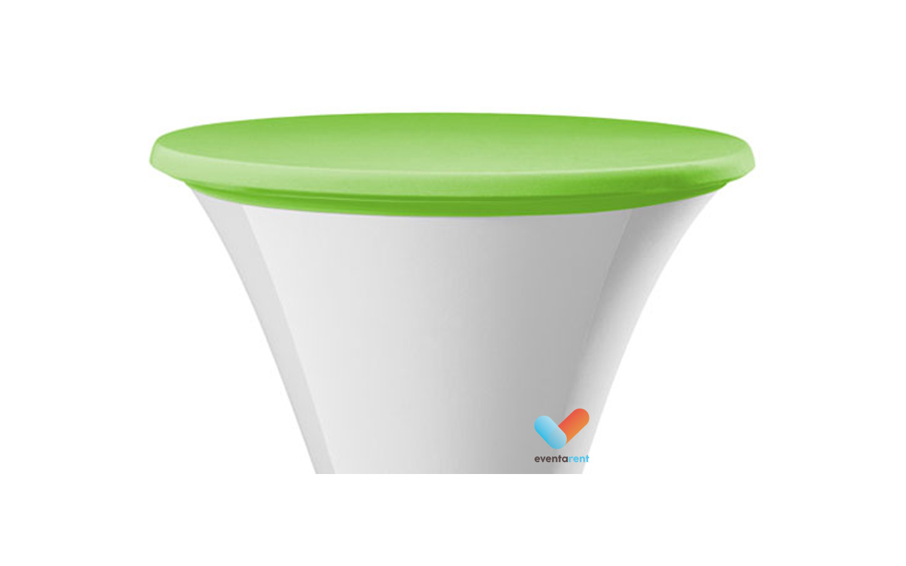 Huur je limoengroene stretchrok topcover voor een statafel bij Eventa Rent. Wij verhuren kwaliteitsvolle stretchrokken, tafelkleden en stoelenhoezen; goedkoop en professioneel. Wist je dat wij een gevarieerd aanbod aan bestek, servies, glazen en linnen verhuren voor elke gelegenheid? Ideaal als je niet voldoende tafelgerei in huis hebt of zelf de afwas niet wil doen.