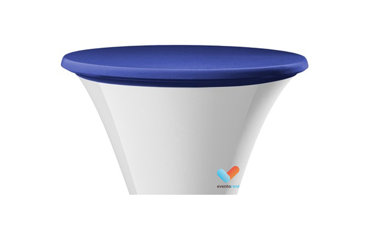 Huur je marineblauwe stretchrok topcover voor een statafel bij Eventa Rent. Wij verhuren kwaliteitsvolle stretchrokken, tafelkleden en stoelenhoezen; goedkoop en professioneel. Wist je dat wij een gevarieerd aanbod aan bestek, servies, glazen en linnen verhuren voor elke gelegenheid? Ideaal als je niet voldoende tafelgerei in huis hebt of zelf de afwas niet wil doen.