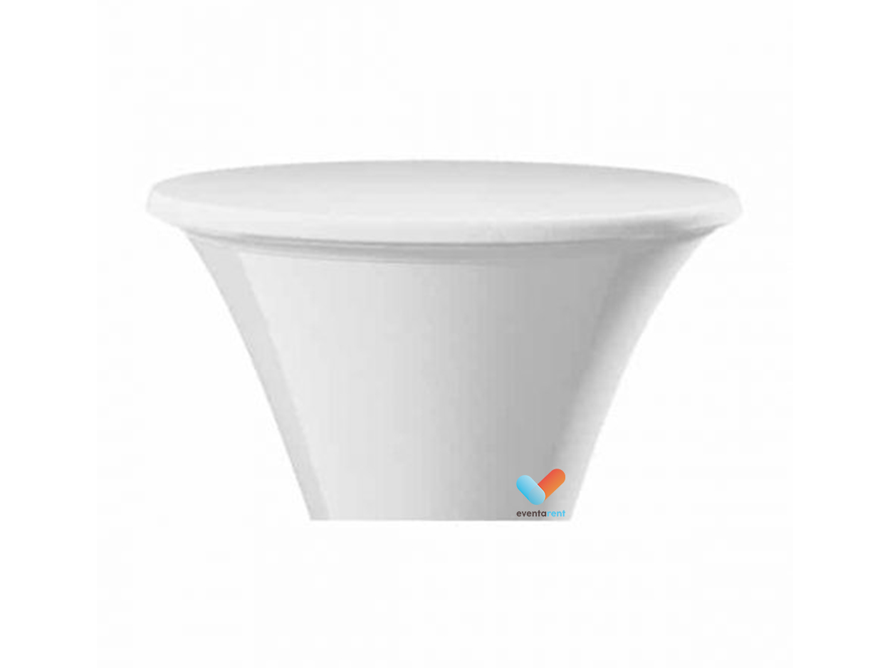 Huur je witte stretchrok topcover voor een statafel bij Eventa Rent. Wij verhuren kwaliteitsvolle stretchrokken, tafelkleden en stoelenhoezen; goedkoop en professioneel. Wist je dat wij een gevarieerd aanbod aan bestek, servies, glazen en linnen verhuren voor elke gelegenheid? Ideaal als je niet voldoende tafelgerei in huis hebt of zelf de afwas niet wil doen.