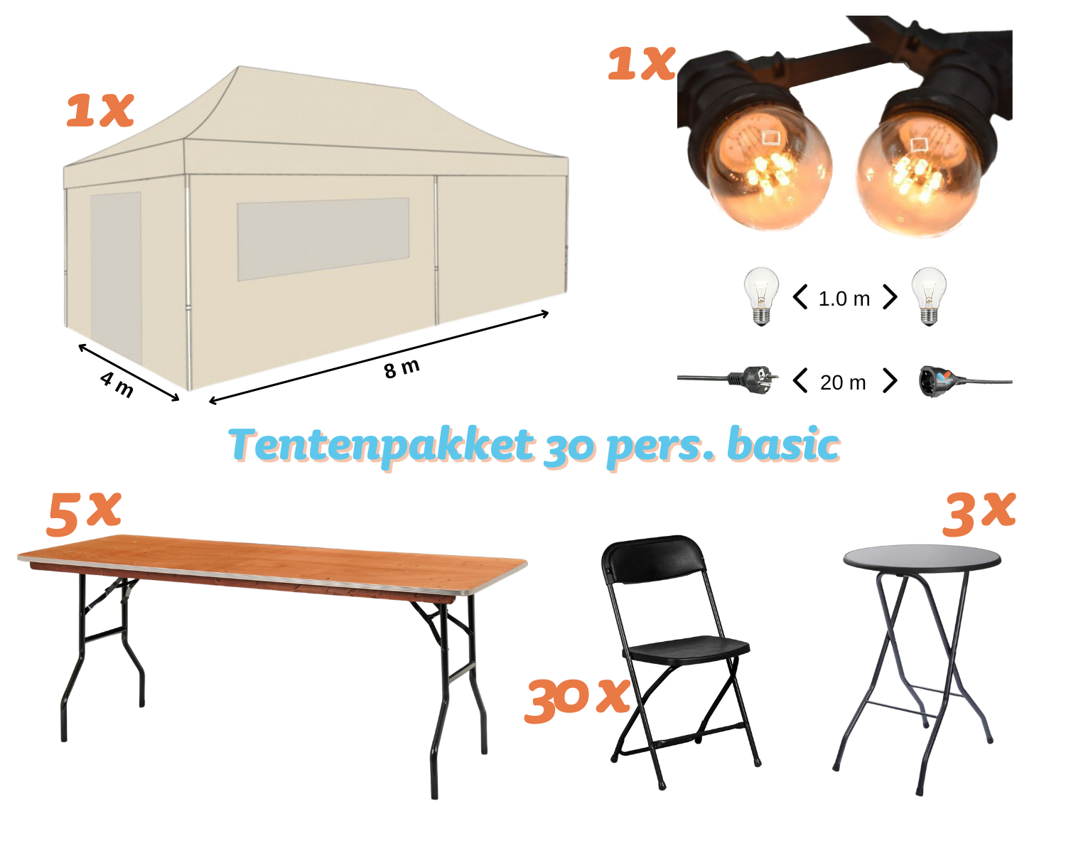 Dit tentenpakket is ideaal voor middelgrote feestjes.