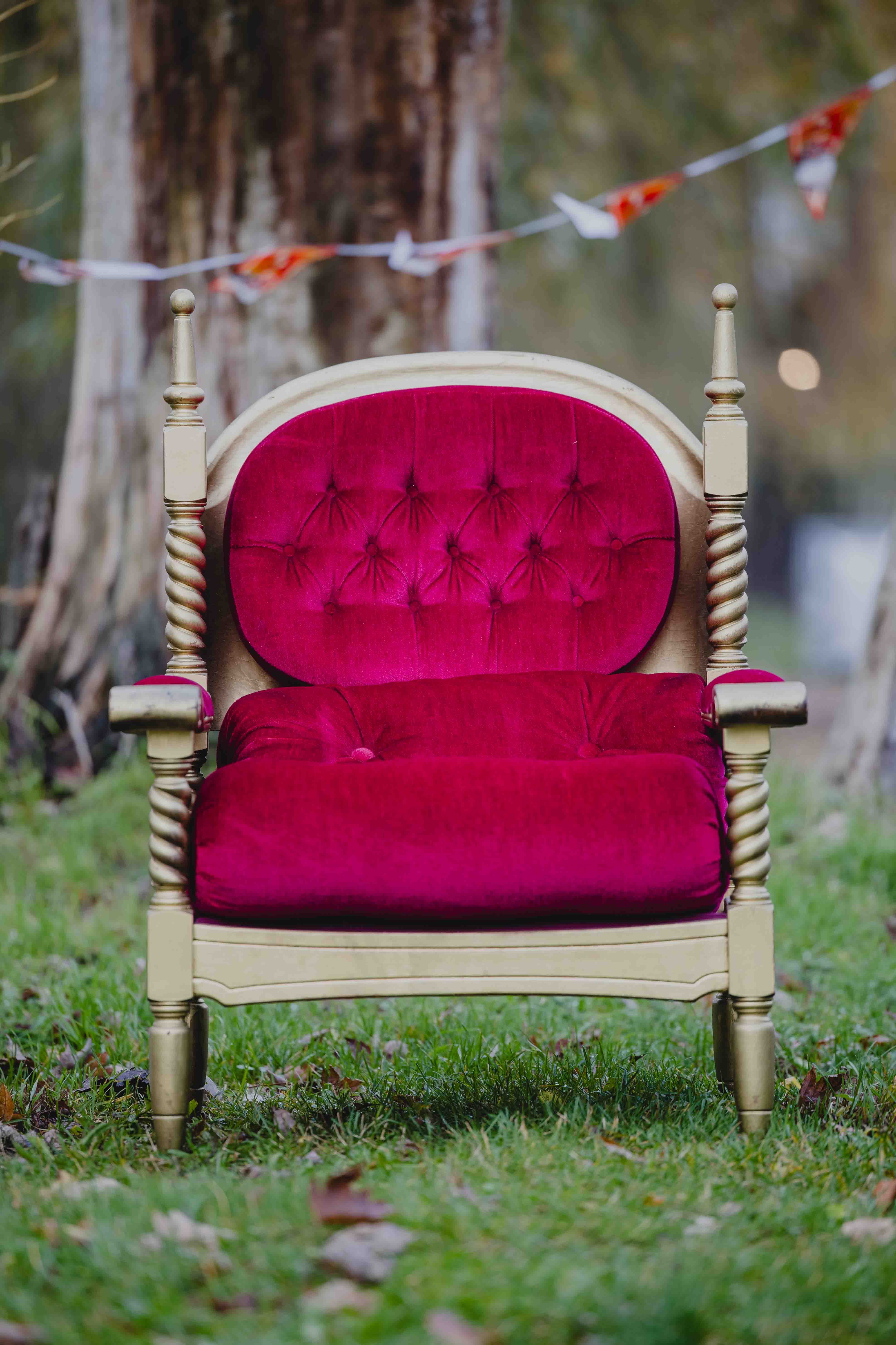 Zorg voor een spetterend Sinterklaasfeest dankzij onze sinterklaasstoel met fluweel rode kussens.