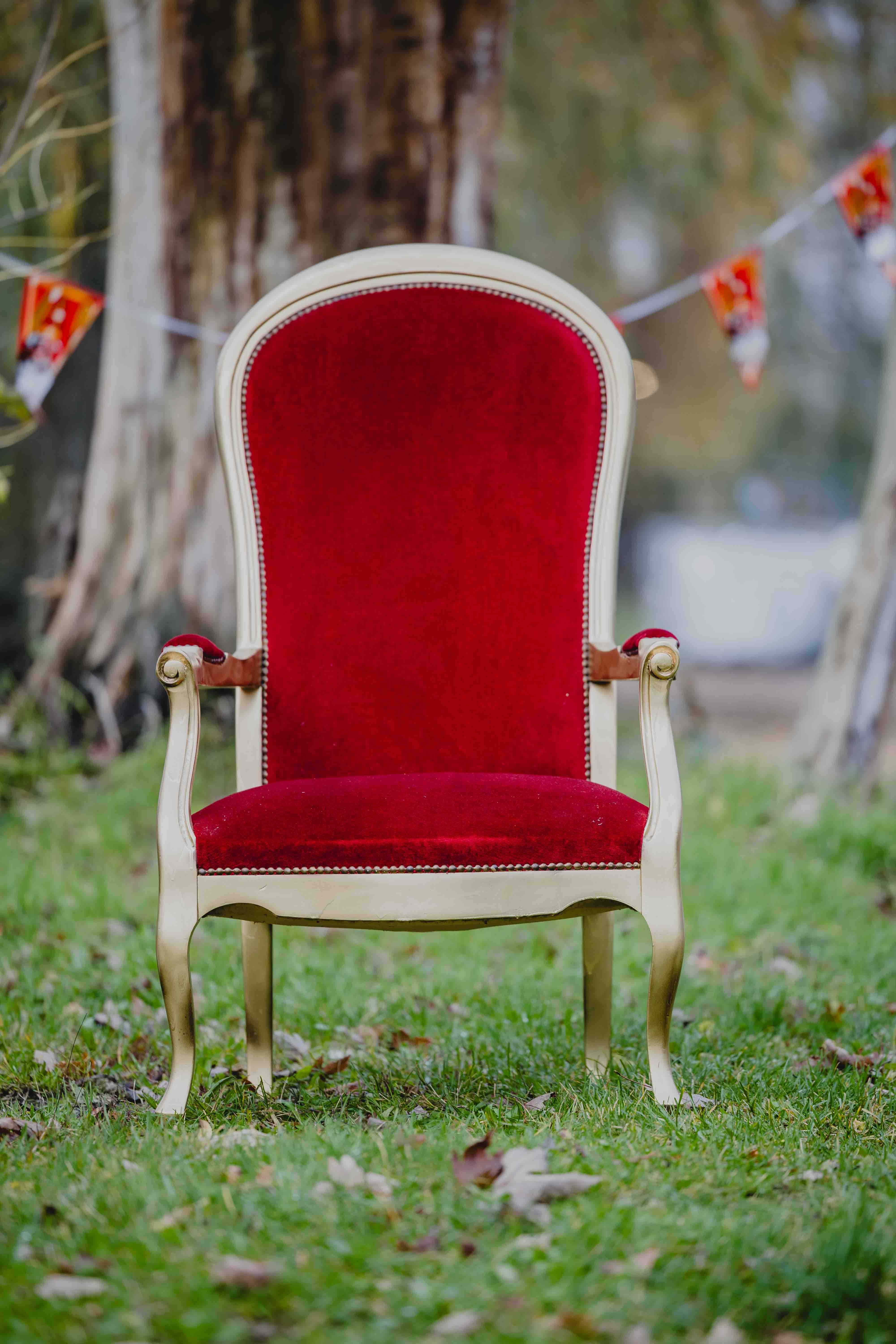 Zorg voor een spetterend Sinterklaasfeest dankzij onze sinterklaasstoel met fluweel rode kussens.
