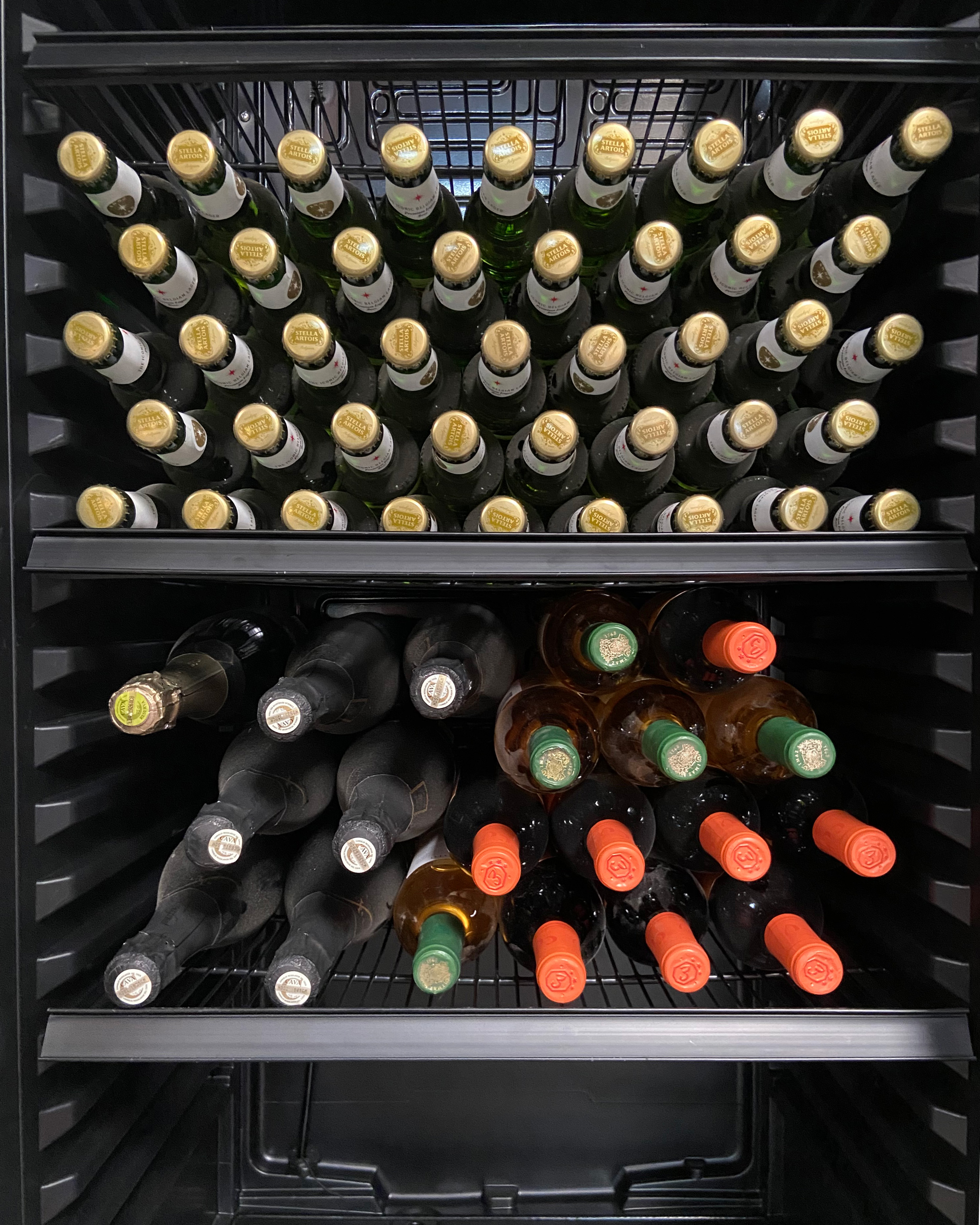 - Wijnflessen (70 cl): Ongeveer 27 flessen op één schap.