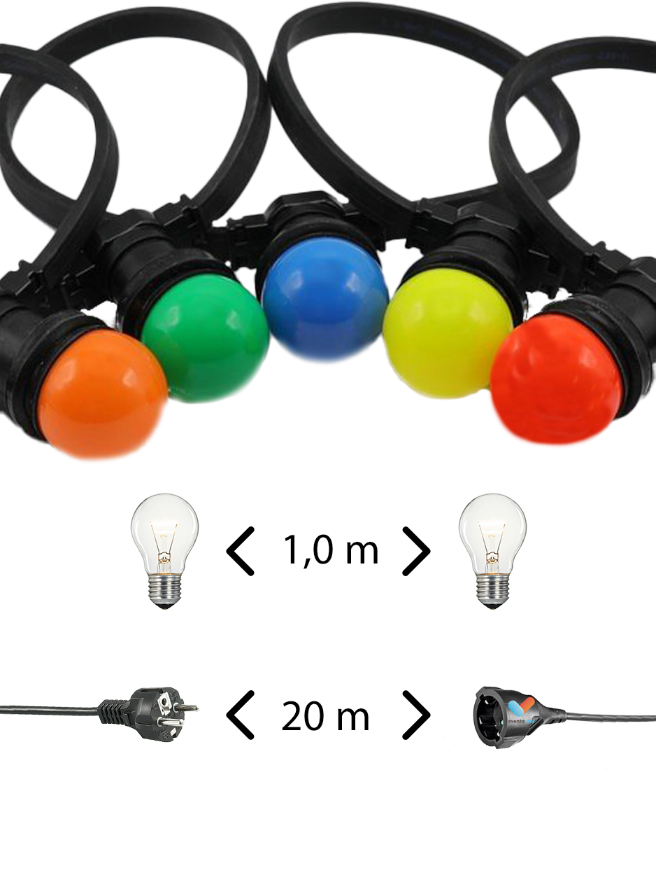 | Afmeting artikel in cm (lxbxh) | Lichtslinger: 20m lang - afmeting lamp: Ø4.5 x6.9cm |
