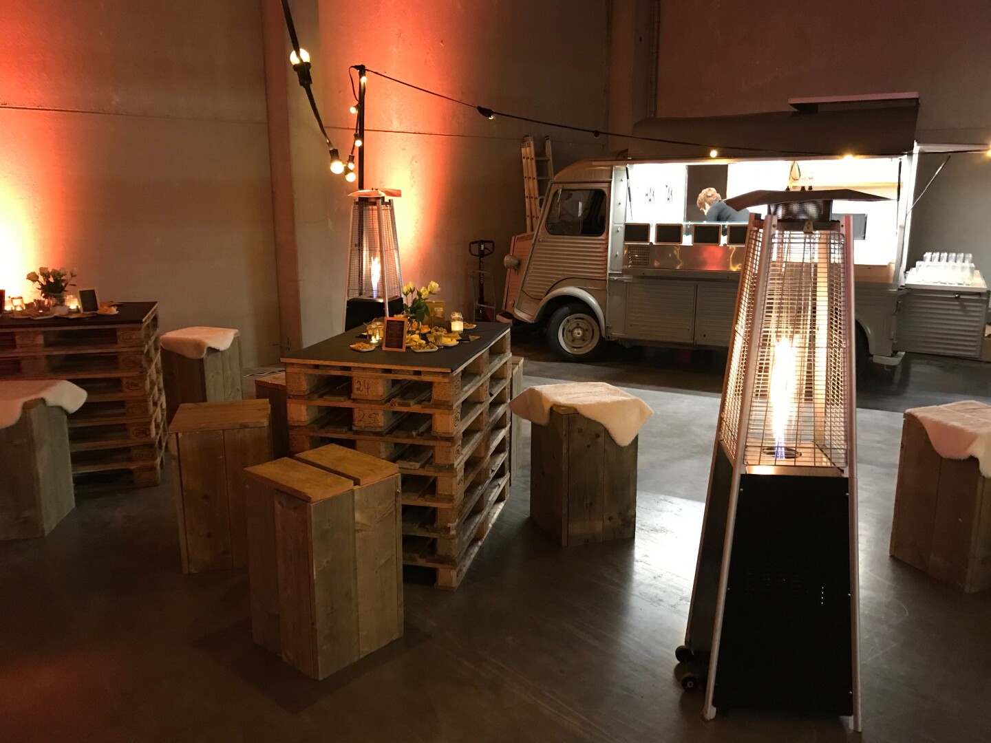 terrasverwarmer op personeelsfeest met mobiele bar
