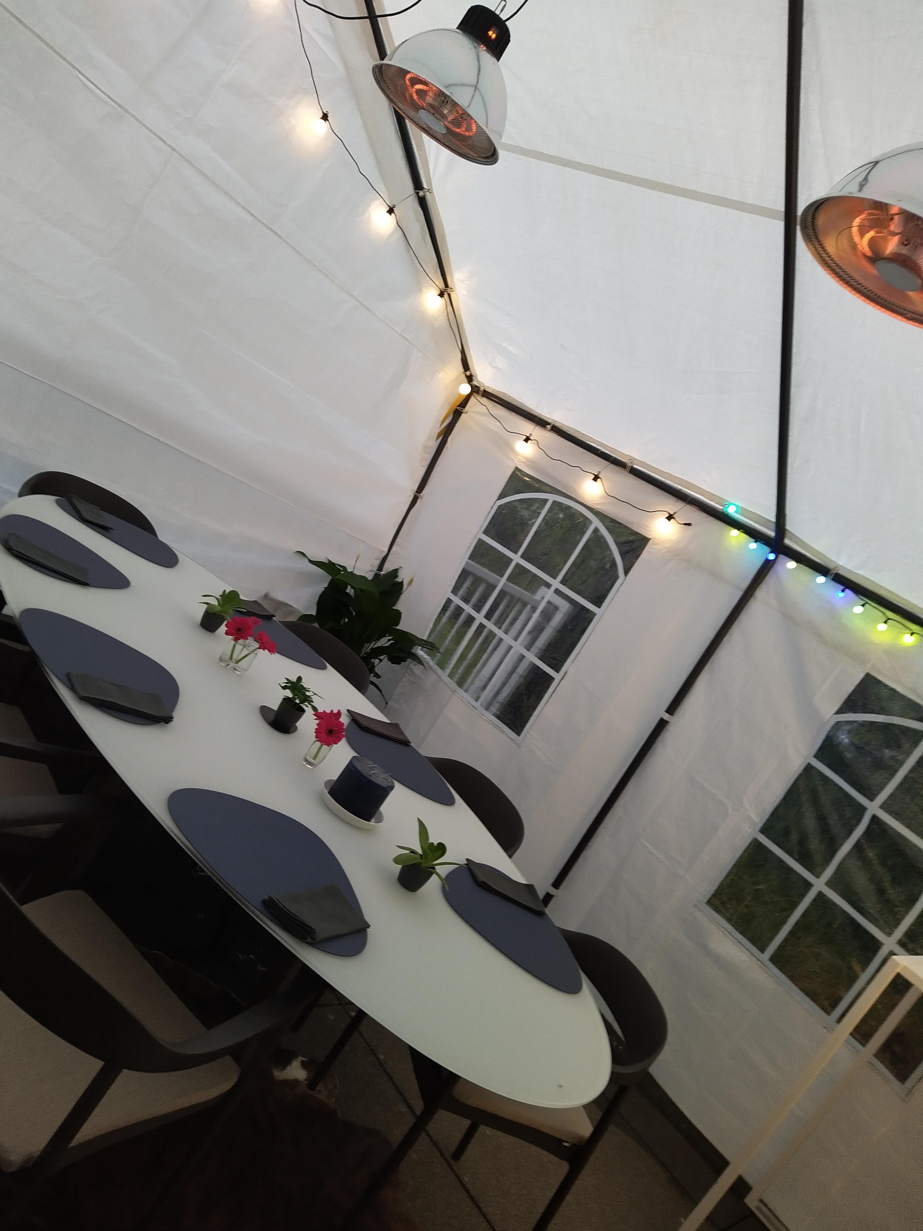Tip: we raden 2 van deze stralingsverwarmers aan voor een tent van 3x6m - de nodige verwarming is sterk afhankelijk van type tent, wind, koude, ondergrond, ...