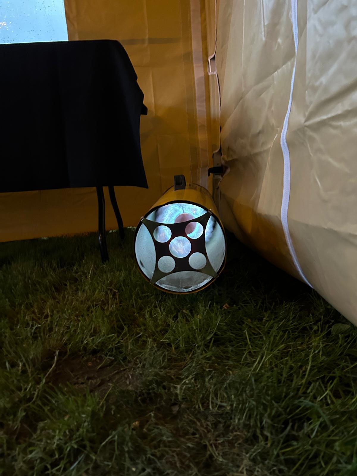 - Werking: op propaangas en kleine blower op elektriciteit (stopcontact nodig)